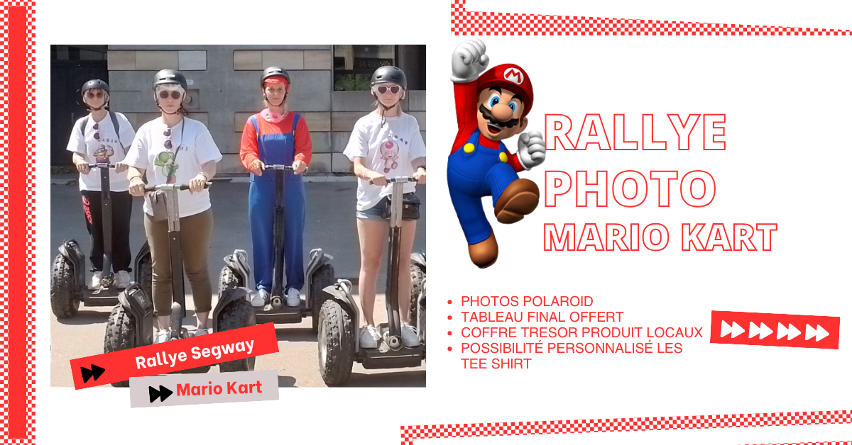 The big bad Bowser has captured your future husband/wife! To find him/her, your mission will be to surpass yourself by crossing the levels of your photo rally. Segway, Successfully complete your steps and you'll get the key numbers to free him/her! They'll allow you to open the door to the "castle." But be careful, Bowser isn't the only bad guy... Imposters are hiding among you and will have the mission of sneaking into your photos! Mario costume and character T-shirt provided. Digital tablet game, Polaroid-style photos provided.